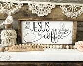 Jesus and Coffee Sign | Coffee Bar Sign | Coffee Art | Kitchen Signs | Kitchen Decor | Coffee Decor (13.5" x 6.5")